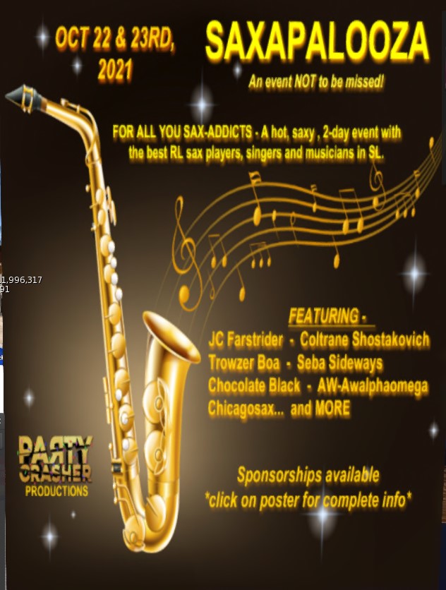 How many of us love our live entertainment in SL, here is an opportunity for you to spend a couple of days supporting the live venue that will feature the musicians in SL who entertain us on a regular basis in SL. In this instance it will be two days of saxophone.