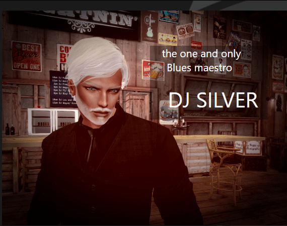 Who is this DJ Silver. Well darned if I know. Silver haired fox.. no.. he is a silver/white wolf .. a wolf who runs the night, chasing stars to keep fit. If you are looking for a talker to spin you yarns, he is not your man. If you are looking for a music maestro, someone who knows almost any genre of music,. his love being the blues… then you want DJ Silver. He will surround you and drown you in a harmonic cloak of blues, from electric to acoustic. From heart stopping tear wrenching blues to guitar solos that will have you crawling the walls. Check him out. Friday 8pm SL time