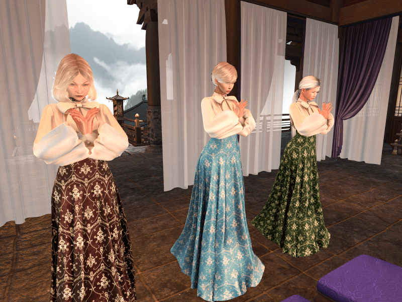 Belle Epoque is a new designer to me, I have used it before, but not often… When I saw these dresses I thought them perfect for use at Peng Lai. They were part of the week-end sales… the outfits are sophisticated, elegant and are respectful…