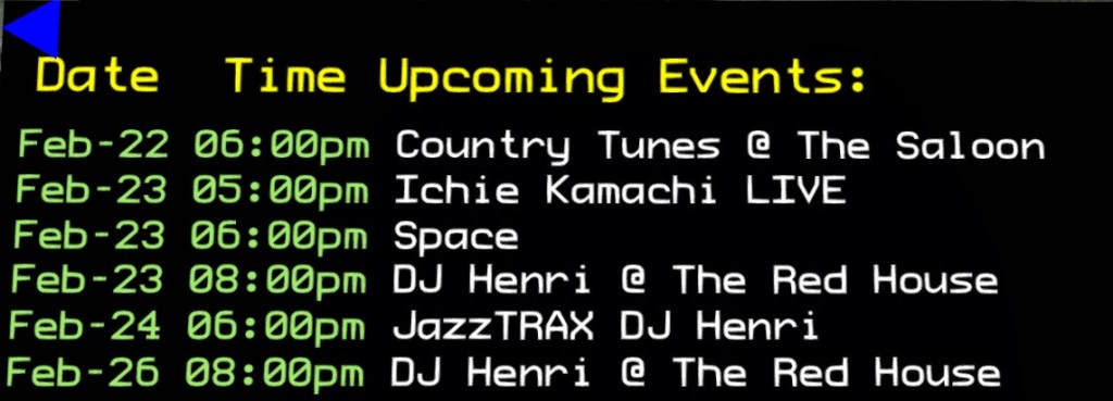 CORNERSTONE THEATRE-saxational sundays at 9am slt; every 1st and 3rd sunday (6th and 20th March) SLurl; http://maps.secondlife.com/secondlife/GEL%20Community%2014/186/50/1000