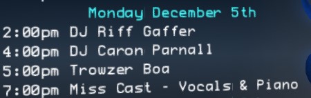Every evening from 5 slt. to 7 slt. you will find a DJ with a fun and often diverse collection of tunes for you to enjoy. Join their group and you will always know of the various themes that are presented by the DJs.
